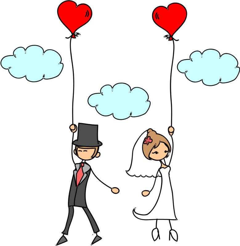 Cartoon Wedding Groom Bride Heart Balloons 1